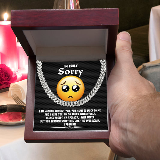 Apology Gift for Him “I’m Truly Sorry” Cuban Chain Necklace with Message Card | Forgiveness Jewelry for Him