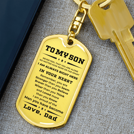 Gift for Adult Son from Dad Engraved Military Style Dog Tag Keychain