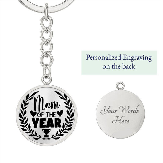 Mom of the Year Engraved Circle Keychain