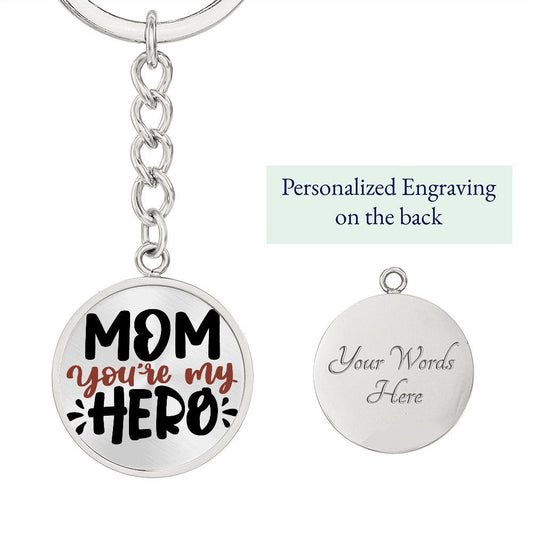 Mom You're My Hero Engraved Circle Keychain