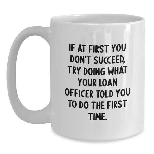Funny Loan Officer Gifts from Family - White Coffee Mug for Graduation, 'If At First You Don't Succeed, Try Doing What Your Loan Officer Told You To Do The First Time.'