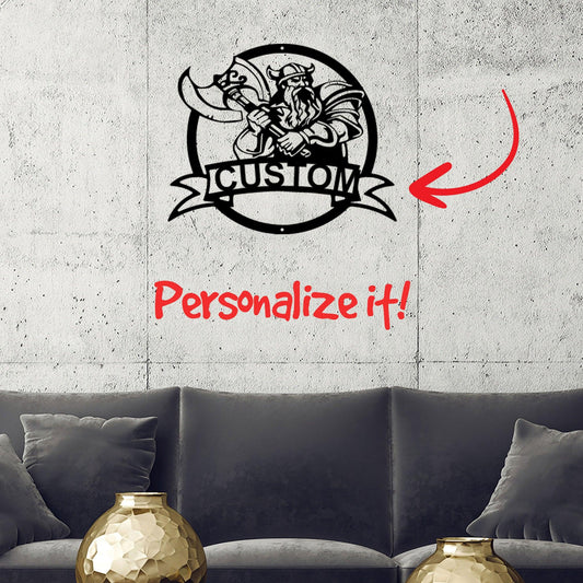 Fighting Viking Monogram Personalized Name Indoor Outdoor Steel Wall Sign Metal Man Cave Art