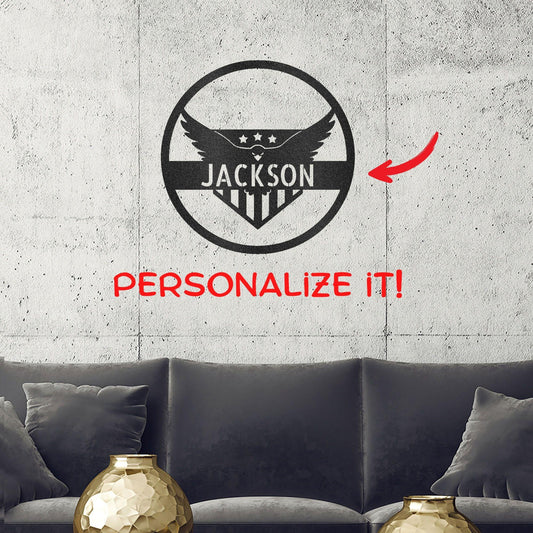 Patriotic Eagle Monogram Personalized Indoor Outdoor Steel Wall Sign Art