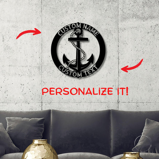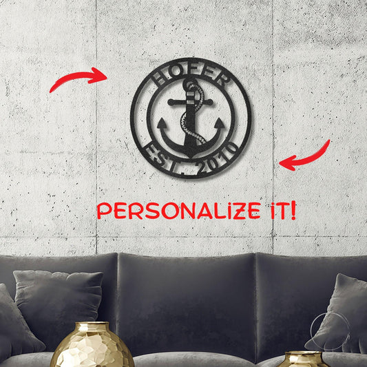 Anchor Plaque Personalized Name Indoor Outdoor Steel Wall Sign Metal Art
