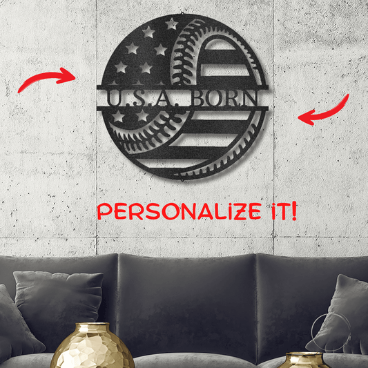 Baseball American Flag Custom Name Metal Art Wall Sign