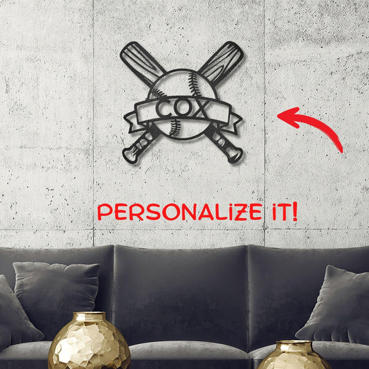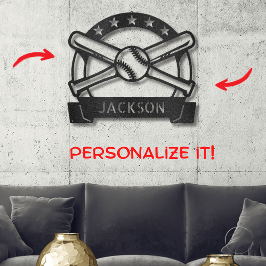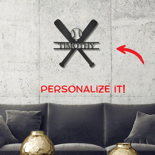 Baseball and Bats Custom Name Metal Art Wall Sign