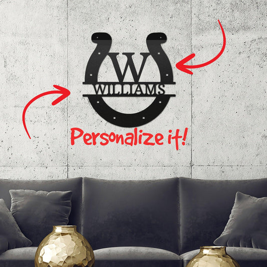 Horseshoe Custom Name and Initial Metal Art Wall Sign