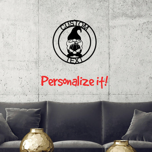 Thanksgiving Gnome with Pumpkin Custom Name Metal Art Wall Sign Home Decor