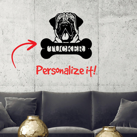 Mastiff Dog Custom Name Metal Art Wall Sign