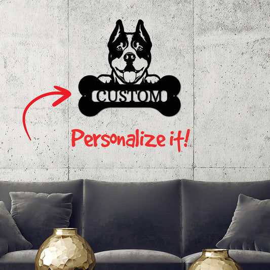 Pit Bull Dog Custom Name Metal Art Wall Sign