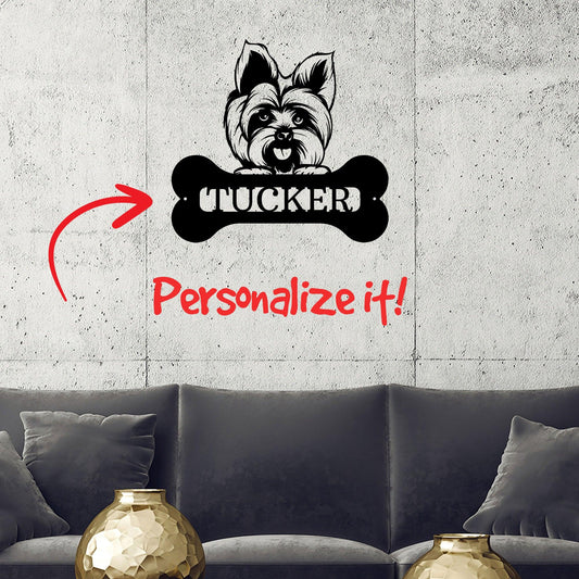 Yorkshire Terrier Dog Custom Name Metal Art Wall Sign