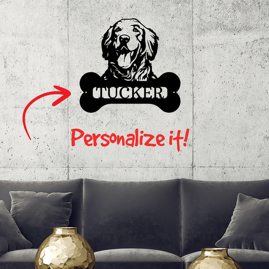 Golden Retriever Dog Custom Name Metal Art Wall Sign
