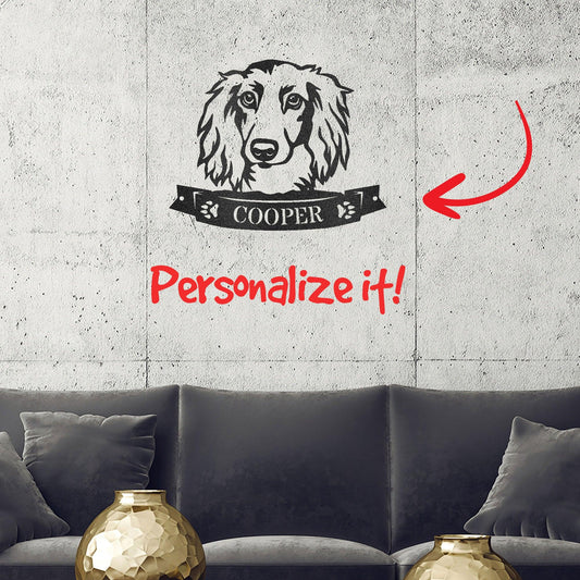 Dachshund Face Long-haired Custom Name Metal Art Wall Sign