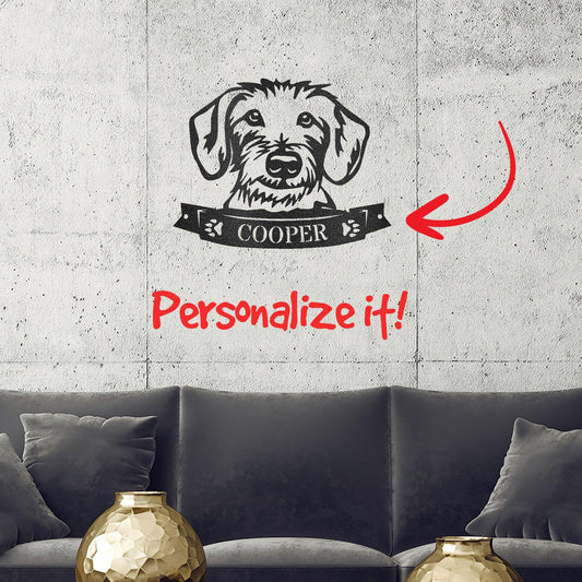 Dachshund Face Wire-haired Custom Name Metal Art Wall Sign