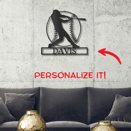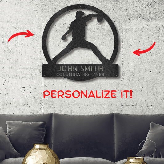Baseball Pitcher Custom Name Metal Art Wall Sign
