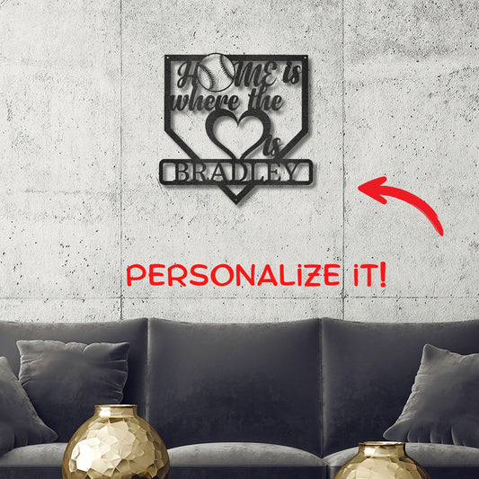 Baseball Home Is Where the Heart Is Custom Name Metal Art Wall Sign