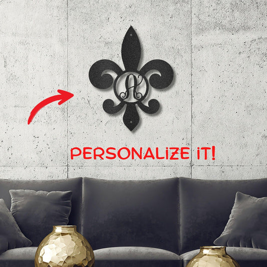 Fleur De Lis Personalized Initial Metal Art Wall Sign