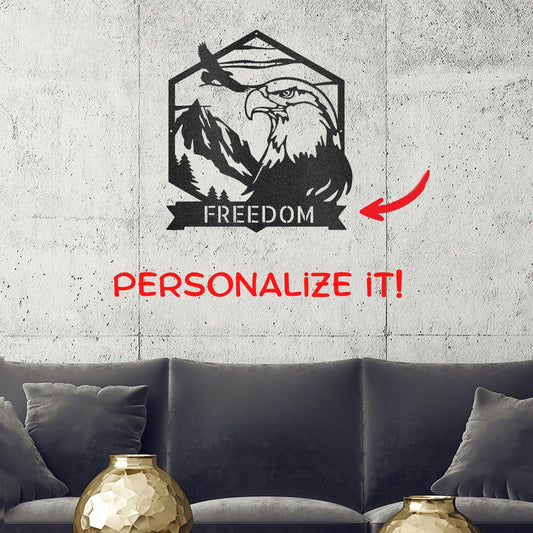 Bald Eagle Mountain Scene Custom Name Metal Art Wall Sign