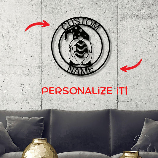 Gnome Easter Egg Custom Name Metal Art Wall Sign Home Decor