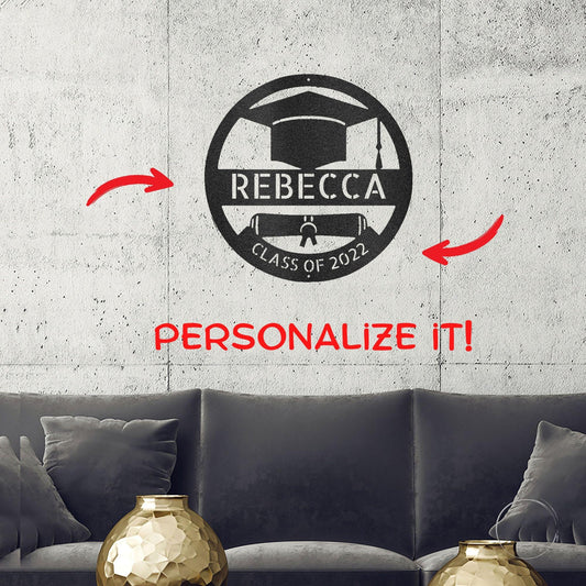 Graduation Cap and Diploma Custom Name Metal Art Wall Sign