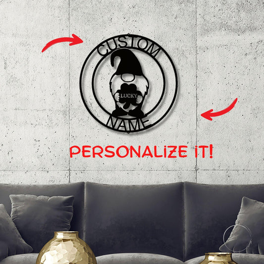 Gnome Lucky St. Patrick's Day Custom Name Metal Art Wall Sign Home Decor