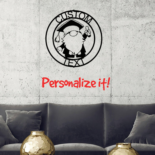 Gnome Graduate Custom Name Metal Art Wall Sign Home Decor