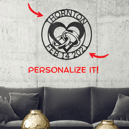 Engagement Wedding Rings and Heart Custom Name Metal Art Wall Sign