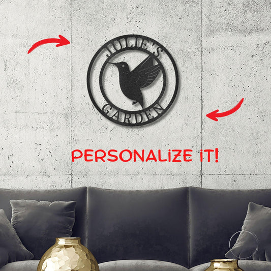 Hummingbird Monogram Personalized Metal Art Wall Sign
