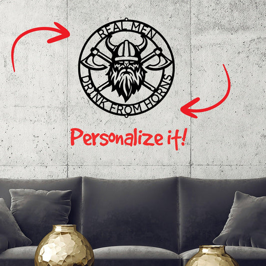 Viking Battle Axe Ring Monogram Personalized Name Indoor Outdoor Steel Wall Sign Metal Art