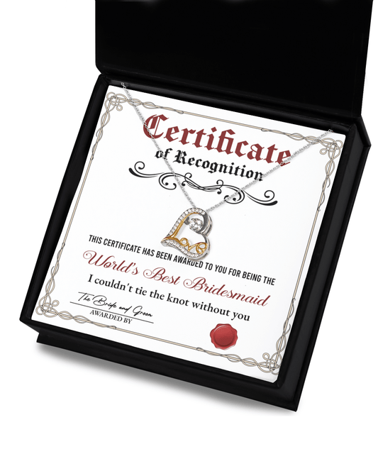 Bridesmaid Gift - Certificate Of Recognition Love Dancing Heart Pendant Necklace