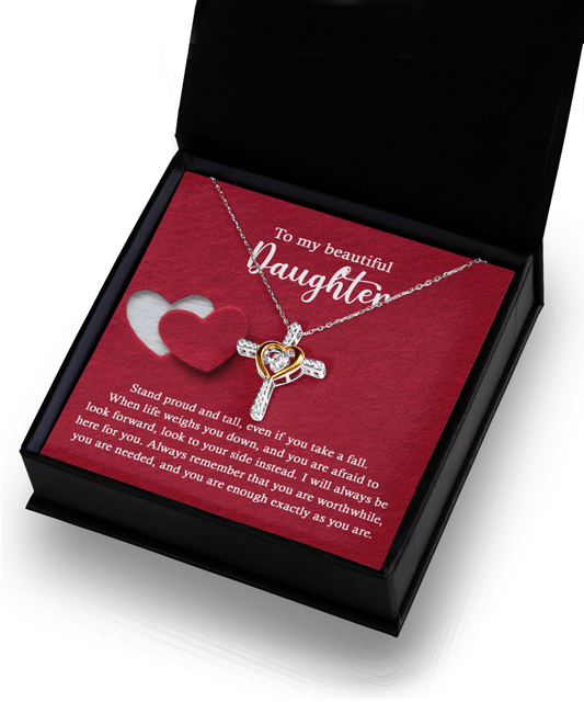 Daughter Inspirational Cross Pendant Necklace Birthday Graduation Wedding Holiday Gift