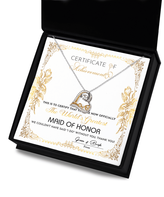 Maid Of Honor Wedding Day Gift - Certificate Of Achievement - Love Dancing Heart Pendant Necklace