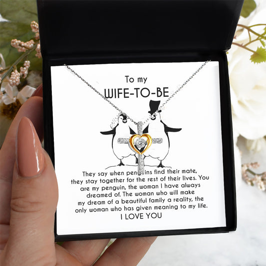 To My Wife-to-be You Are My Penguin Love Dancing Heart Pendant Necklace