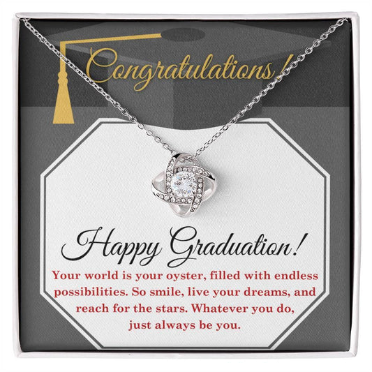 Happy Graduation-Your World is your Oyster Love Knot Pendant Necklace