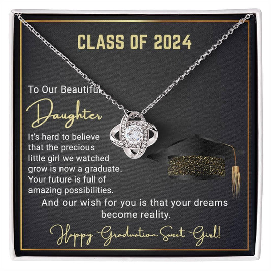 Gift To Our Beautiful Daughter Class of 2024 Graduation Wish Love Knot Pendant Necklace