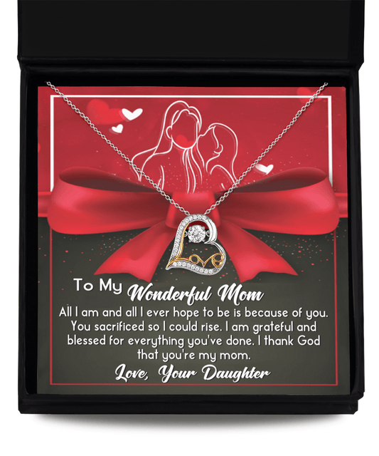 To My Wonderful Mom All I Am is Because of You Love Your Daughter Heart Pendant Necklace