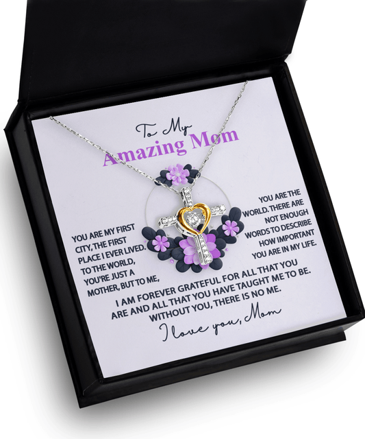 Mom, I am Forever Grateful, Without You, There is No Me - Cross Pendant Necklace