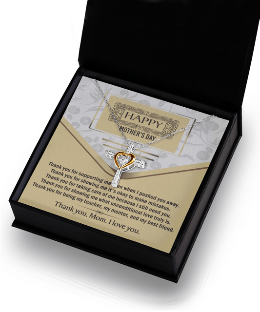 Happy Mother's Day Unconditional Love Cross Pendant Necklace Gift for Mom