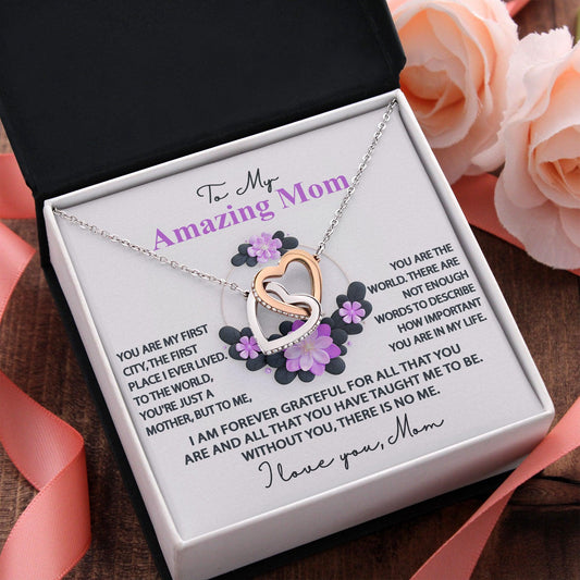 Mom, I am Forever Grateful, Without You, There is No Me - Interlocking Hearts Pendant Necklace Mother's Day, Birthday Gift