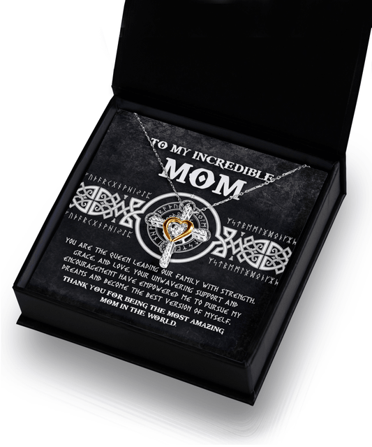 Mom - You are the Queen Leading our Family with Strength, Grace and Love Interlocking Hearts Pendant Necklace