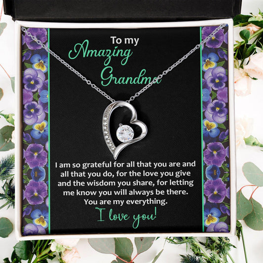 To My Amazing Grandma I am Grateful Forever Love Heart Pendant Necklace