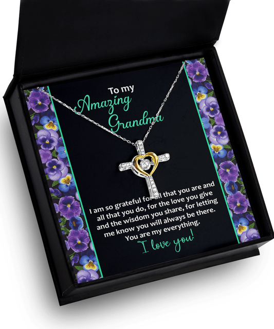 To My Amazing Grandma I am Grateful Cross Pendant Necklace