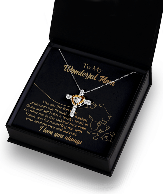 To My Wonderful Mom You Are The Lion that Protected, Supported and Nourished Me Cross Pendant Necklace