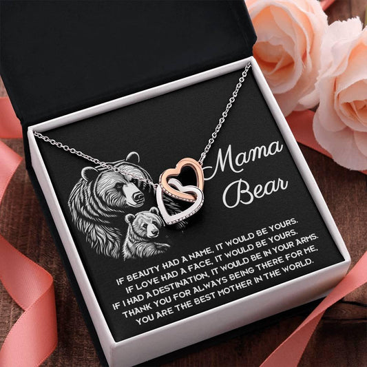 To My Mama Bear My Destination is In Your Arms Interlocking Hearts Necklace