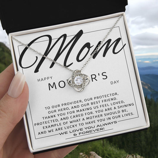 Mom - Happy Mother's Day from All of Us You Are Our Protector, Hero and Best Friend Love Knot Necklace