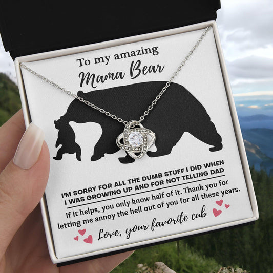 To My Amazing Mama Bear Thanks for Not Telling Dad Love Knot Necklace