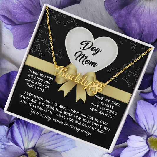 Funny Gift From the Dog for Mom Thank You for that Squeaky Thing Personalized Paw Print Name Necklace
