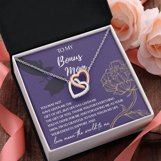 To My Bonus Mom Thank You for Everything Interlocking Hearts Pendant Necklace