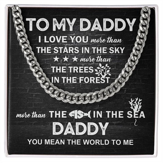 To My Daddy You Mean the World To Me Cuban Link Chain Necklace with Message Card
