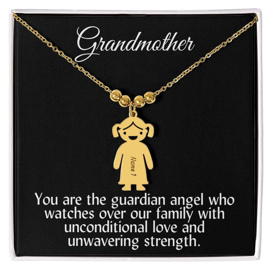 Grandmother You Are the Guardian Angel Engraved Kid Name Pendant Necklace